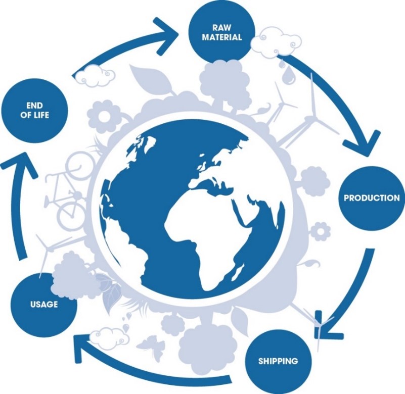 acquisition of raw materials, component manufacturing, packaging, transportation, distribution, use, and end-of-life.
